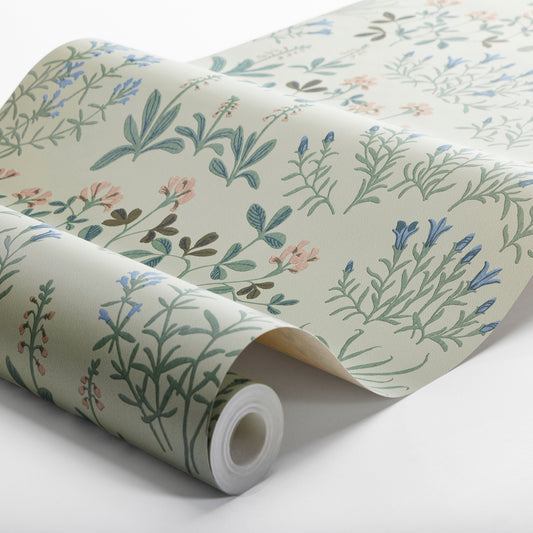MORRIS & CO Laceflower Wallpaper Contemporary, Floral Tobacco,Pistachio Surflex-Printed Wallpaper - MVOW217354