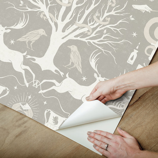 York Wallcoverings RoomMates Harry Potter Horcrux Grey Damask Peel and Stick Wallpaper Modern Trees Greys Wallpaper - RMK12782PLW