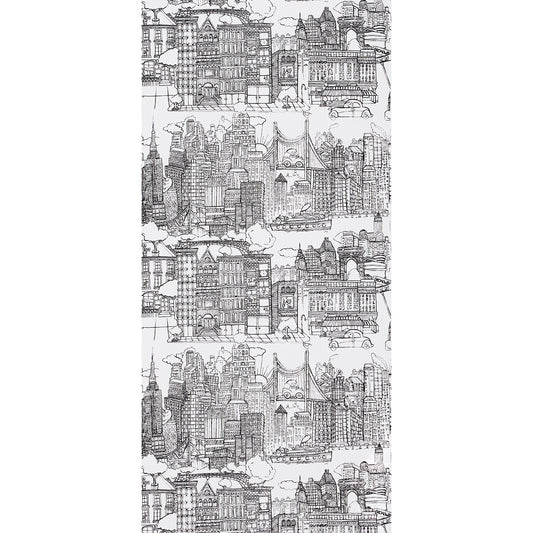 SCHUMACHER WALLCOVERING EXUBERANT PRINTS NEW YORK NEW YORK BLACK ON WHITE - 2705530