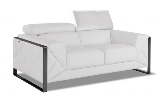 65" White And Silver Italian Leather Power Reclining Loveseat