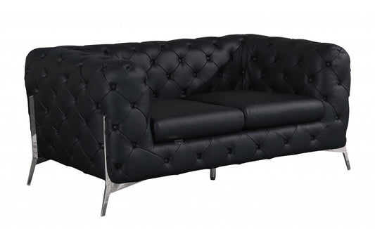 74" Dark Gray And Gold Velour Chesterfield Loveseat