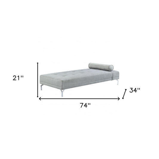 74" Gray Velvet Convertible Futon Sofa With Toss Pillow