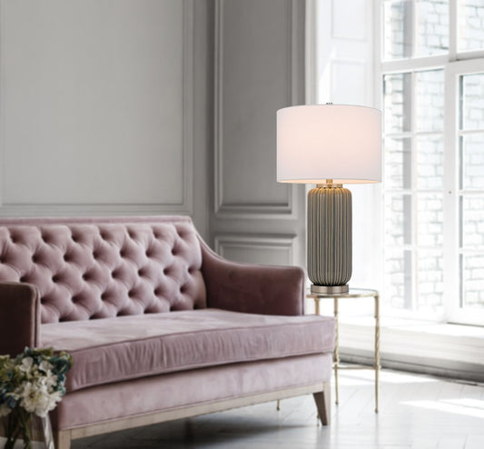 Reduced Price29" Light Gray Glass Table Lamp With White Drum Shade