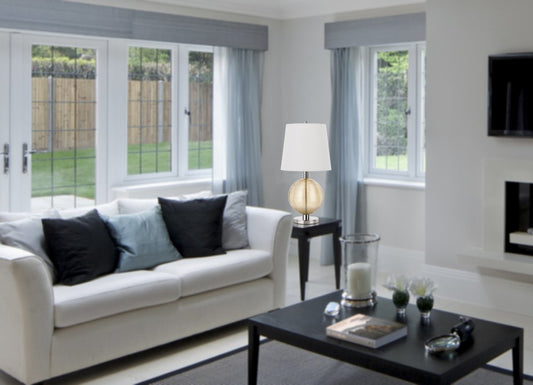 29" Light Gray Glass Table Lamp With White Drum Shade