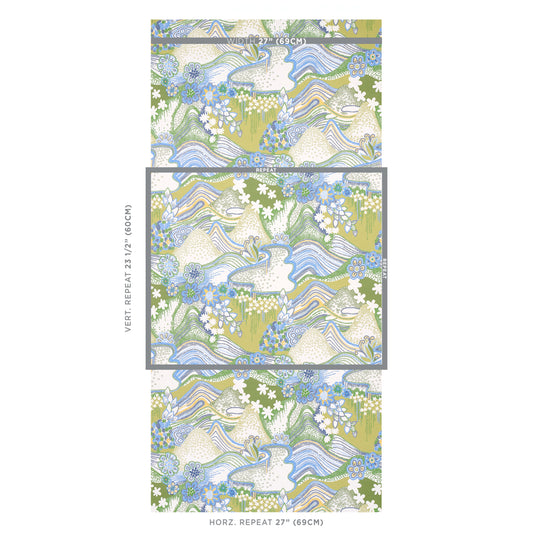 SCHUMACHER WALLCOVERING CLEMENTS RIBEIRO DAISY CHAIN GREEN AND BLUE - 5013552