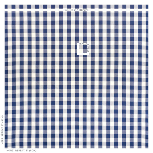 SCHUMACHER FABRIC REVISIT OF POPULAR PATTERNS CAMDEN COTTON CHECK NAVY - 63043