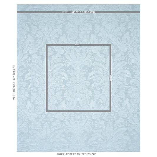 SCHUMACHER FABRIC RHAPSODY IN BLUE COLETTE LINEN/SILK DAMASK CHAMBRAY - 69144