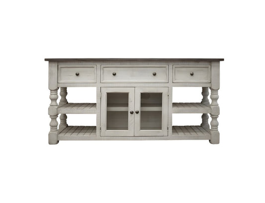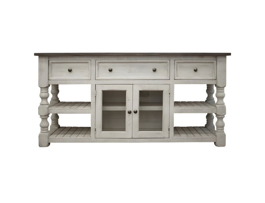 Reduced Price60" Ivory Solid Wood Open shelving Distressed TV Stand