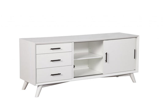 64" White Mahogany Solid Wood Enclosed and Open Storage TV Stand
