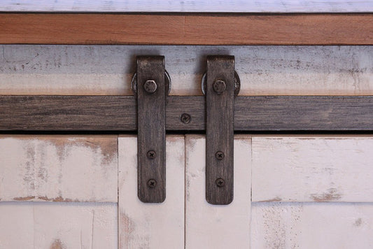 93" Gray Solid Wood Cabinet Enclosed Storage Distressed TV Stand
