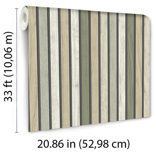 Veer Decor Vintage Slatwork Green Wallpaper Architecture Contemporary, Transitional Green Wallpaper - 8196-AA1