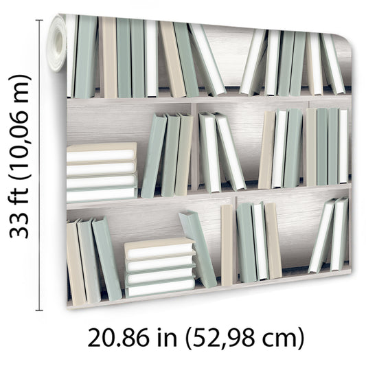 Veer Decor Nook Book Green Wallpaper Novelty Contemporary, Modern, Novelty Green Wallpaper - 8196-AB3