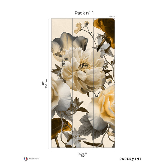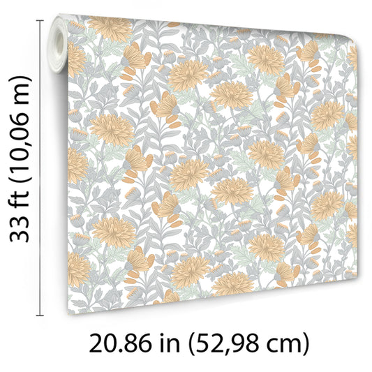 Veer Decor Floral Sonata Yellow and Grey Wallpaper Floral Traditional, Transitional Yellow Wallpaper - 8195-AH1