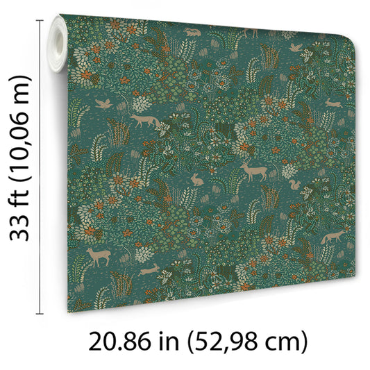 Veer Decor Serene Meadow Green Ground Wallpaper Floral Transitional Green Wallpaper - 8195-AD3