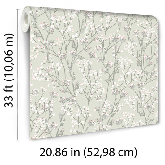 Veer Decor Blossom Branches Grey Green Wallpaper Floral Traditional, Transitional Green Wallpaper - 8195-AG4