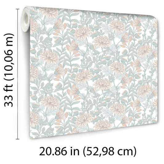 Veer Decor Floral Sonata Pink and Green Wallpaper Floral Traditional, Transitional Pink Wallpaper - 8195-AH2