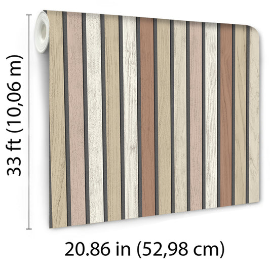 Veer Decor Vintage Slatwork Brown Wallpaper Architecture Contemporary, Transitional Brown Wallpaper - 8196-AA2