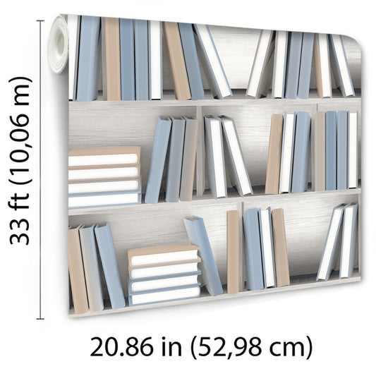 Veer Decor Nook Book Blue Wallpaper Novelty Contemporary, Modern, Novelty Blue Wallpaper - 8196-AB1