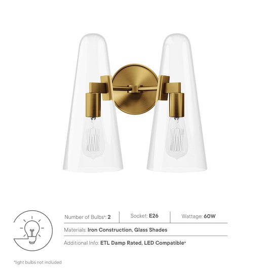 Modway Outlet Beacon 2-Light Wall Sconce by Modway Lighting Lighting Clear Satin Brass - EEI-5646-CLR-SBR