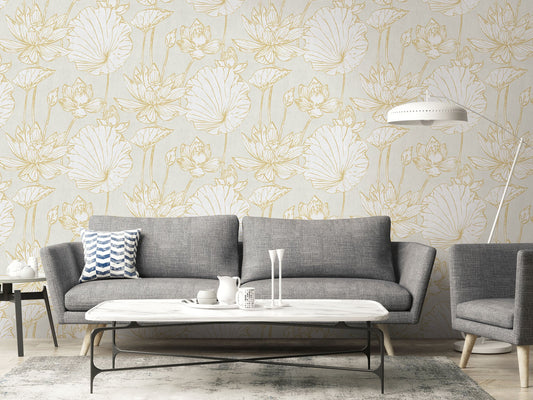 Seabrook Designs Koi Lotus Floral Floral Traditional Beige Metallic - AI42305