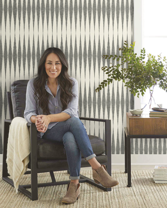 York Wallcoverings Magnolia Home High Performance In The Details Charcoal Wallpaper Transitional Stripes Blacks Wallpaper - MJ4875
