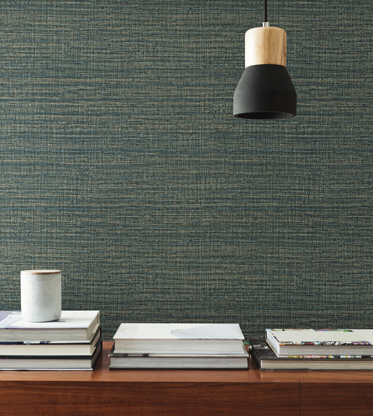 York Wallcoverings Montecito Loom Denim Wallpaper Traditional Weaves Blues - SI26147