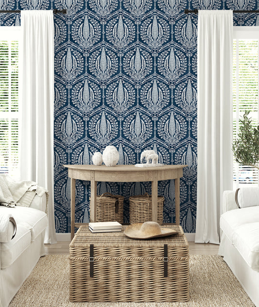 Seabrook Designs Summer House Talia Botanical Medallion Geometric Contemporary Blue Matte - SC21312