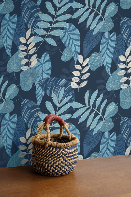 Seabrook Designs Boho Rhapsody Tropicana Leaves Botanical Bohemian Blue Matte - RY30902