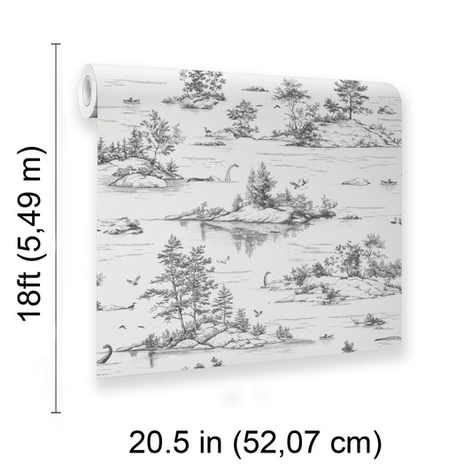 Veer Decor Nessie Novelty Toile Gray Peel and Stick Wallpaper Landscape, Novelty, Patterns Transitional, Traditional, Novelty Gray Wallpaper - 8335-AD2