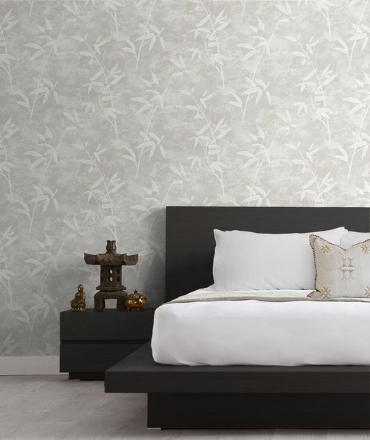 Seabrook Designs Japandi Style Honshu Bamboo Botanical Rustic Grey Matte - JP10908