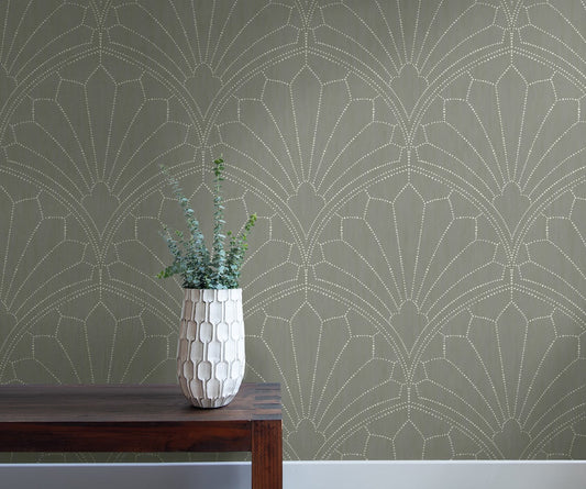 Seabrook Designs Koi Confucius Scallop Geometric Traditional Grey Metallic - AI41508