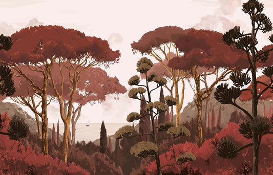 Veer Decor Matsu Pack 1 & 2 in Orange Wall Mural Nature Mural Orange Mural - 8184-BDL-CA4