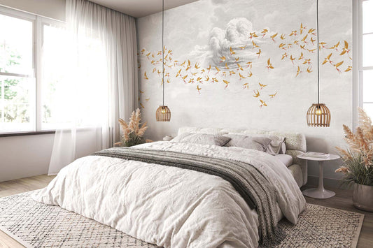 Veer Decor Swallow Clouds Pack 1 in Orange Wall Mural Animals Mural Orange Mural - 8184-CZ4-A