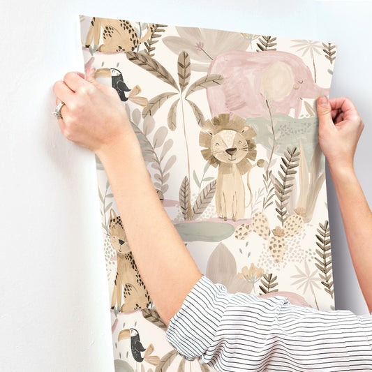 York Wallcoverings Advantage In The Jungle Pink Animal Friends Wallpaper Animals Kids Pink Wallpaper - 4203-27557
