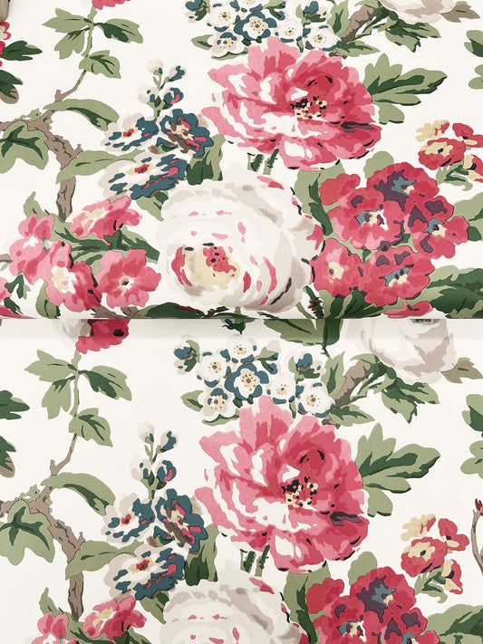 York Wallcoverings Antonina Vella Beatrix Fuchsia Vintage Floral Wallpaper Graphics Farmhouse Red & Green Wallpaper - VP1355