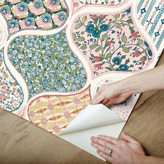 York Wallcoverings RoomMates Pippa Warm Multi Peel and Stick Wallpaper Country Graphics Pinks Wallpaper - RMK12692PLW