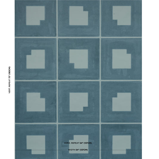 York Wallcoverings Antonina Vella Marquetry Teal Tile Wallpaper Graphics Traditional Teal Wallpaper - MA35512