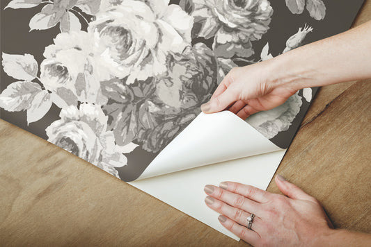 York Wallcoverings York Premium Peel + Stick Magnolia Home Tea Rose Black and White Peel and Stick Wallpaper Florals and Flowers Whites and Off-Whites Wallpaper - PSW1156RL