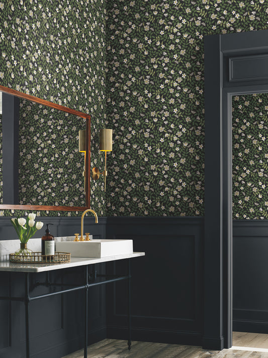 York Wallcoverings RoomMates Meadow Mix Black Peel and Stick Wallpaper Whimsical Botanical Whites and Off-Whites Wallpaper - RMK12179PLW