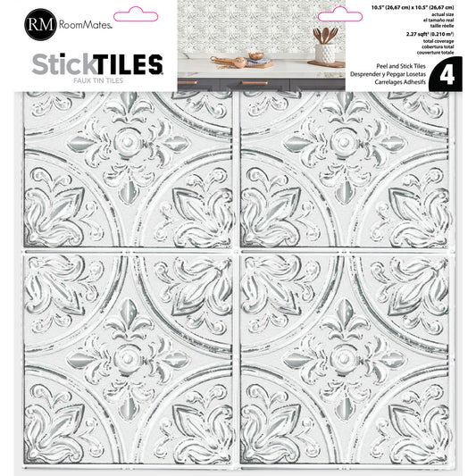 York Wallcoverings RoomMates Tin White Peel and Stick Tile Backsplash Industrial Graphics Whites and Off-Whites Wallpaper - TIL4623FLT