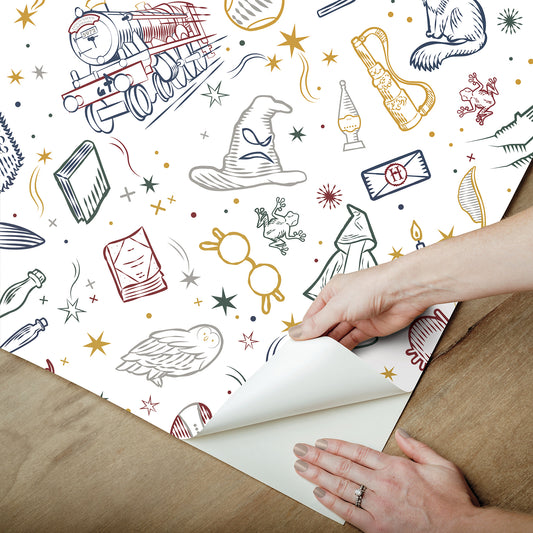 York Wallcoverings RoomMates Harry Potter Map White Peel and Stick Wallpaper Whimsical Licensed Whites and Off-Whites Wallpaper - RMK12353PL
