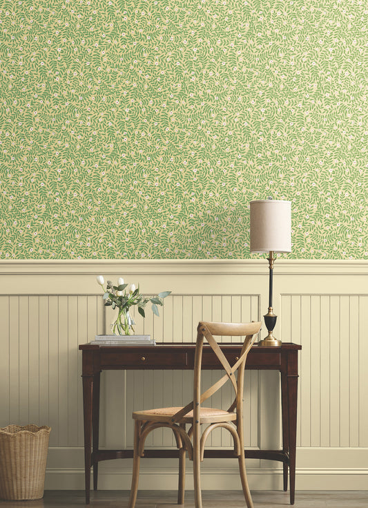 York Wallcoverings Antonina Vella Genevieve Butter Floral Trail Wallpaper Botanical Farmhouse Butter & Green Wallpaper - VP1421