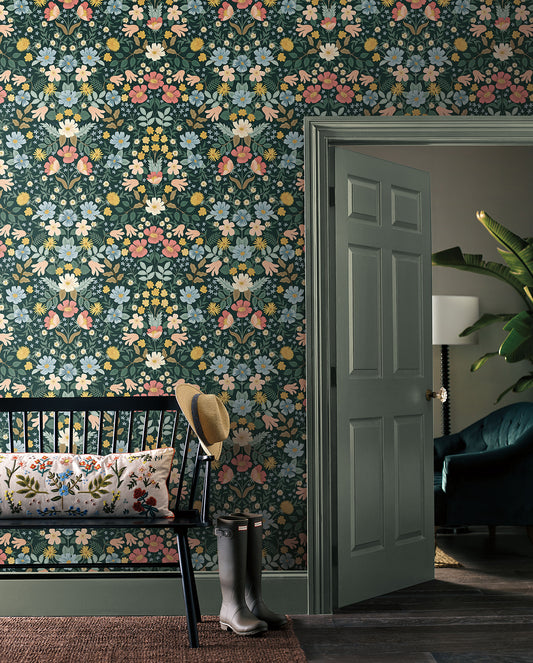 York Wallcoverings Peel and Stick Rifle Paper 2 Woodland Floral Meadow Green Peel and Stick Wallpaper Florals and Flowers Greens Wallpaper - PSW1437RL