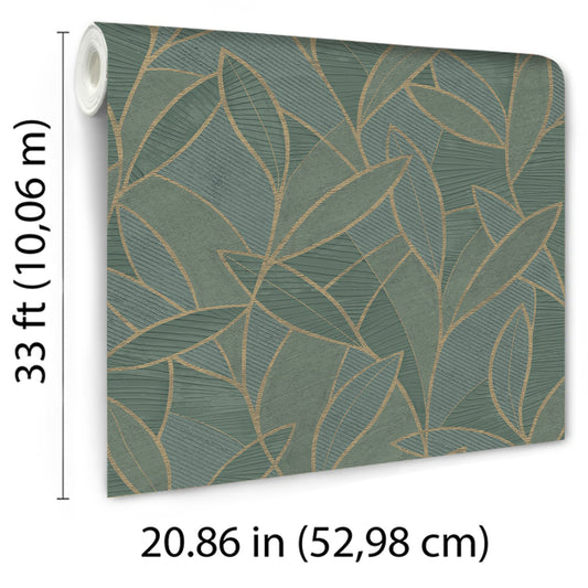Veer Decor Carved Leaf Dark Moss Wallpaper Nature Contemporary/Modern Green Wallpaper - 8249-AC4