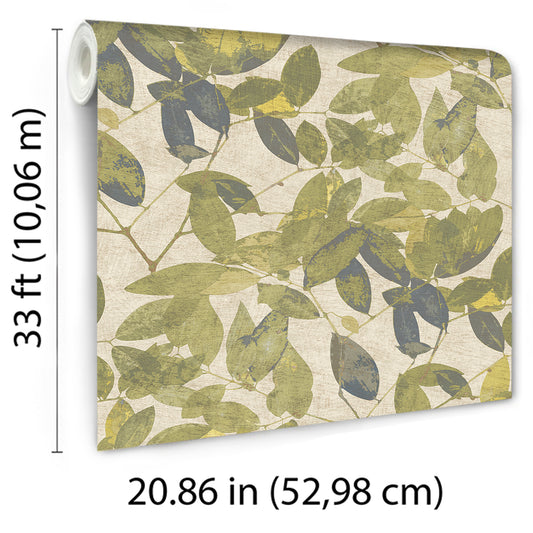 York Wallcoverings Artisan Studio Brushwork Branches Leaf Green Wallpaper Modern Botanical Greens - ZM2872