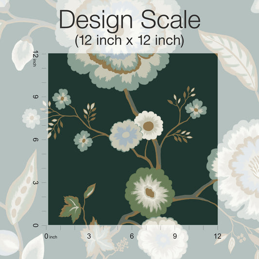 York Wallcoverings Blues II Dahlia Blooms Green and Blue Metallic Wallpaper Florals and Flowers Metallics - GO8236