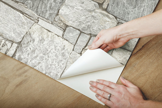 York Wallcoverings Rifle Paper Co. Premium Peel and Stick Chateau Stone Grey Peel and Stick Wallpaper Brick, Wood and Stone Greys Wallpaper - PSW1308RL