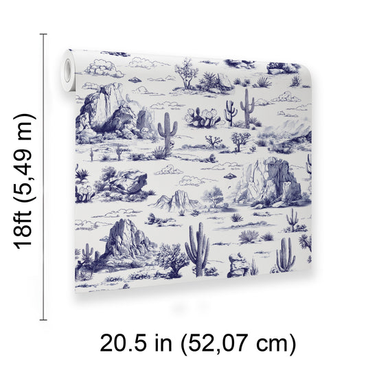 Veer Decor Area 51 Novelty Toile Navy Blue Peel and Stick Wallpaper Landscape, Novelty, Patterns Transitional, Traditional, Novelty Blue Wallpaper - 8335-AA1