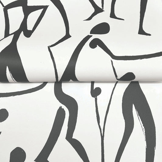 York Wallcoverings Artisan Studio Joyful Dancers Carbon Black Wallpaper Modern Bohemian Blacks - ZM2831