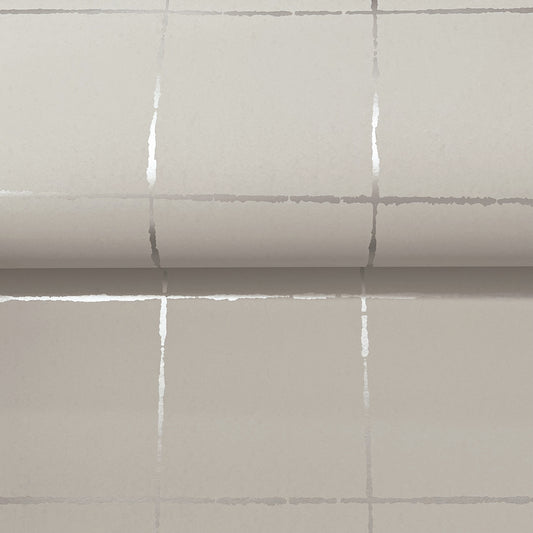 York Wallcoverings Artisan Studio La Vitre Plaid Lichen Grey Wallpaper Modern Geometrics Metallics - ZM2851